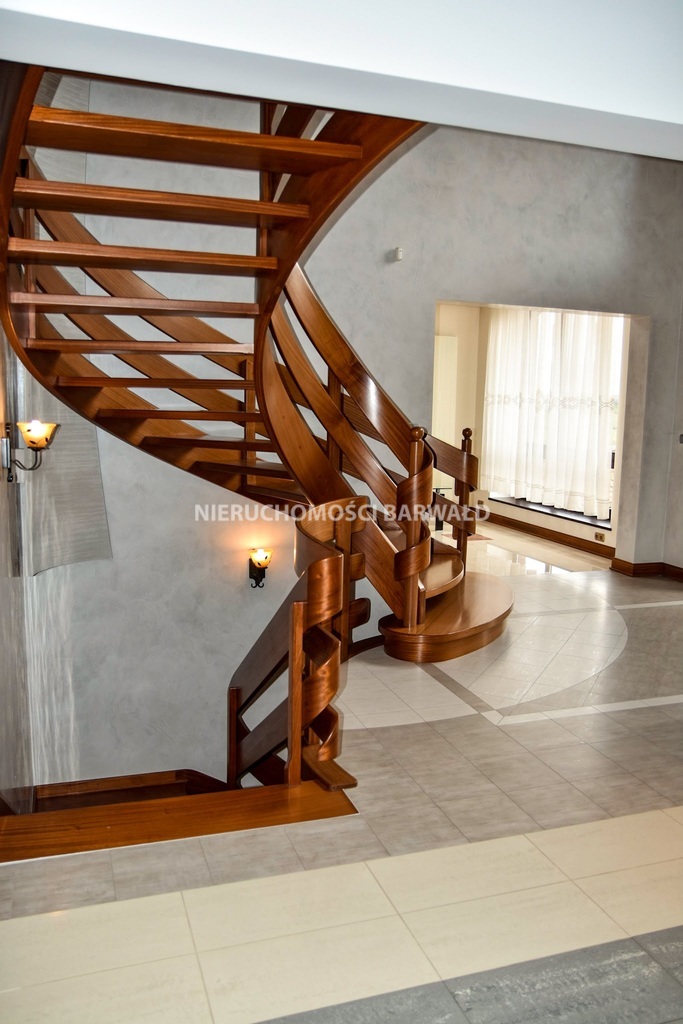 - salon, kuchnia, główna sypialnia z łazienką i garderobą, gabinet, strefa wypoczynkowa, piękne schody drewniane